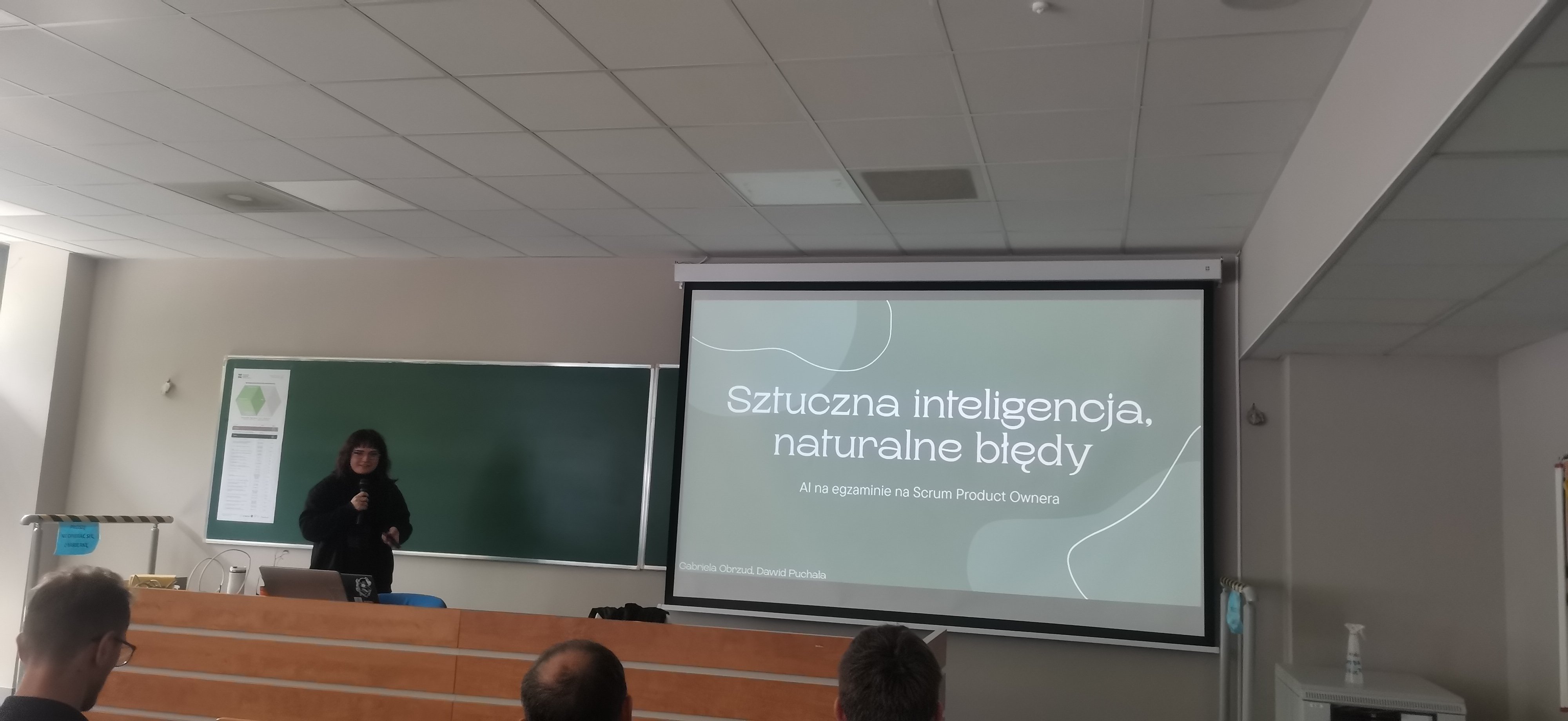 Sztuczna inteligencja, naturalne błędy – AI w teście Scrum na Product Ownera (Gabriela Obrzud, Dawid Puchała) – badanie kompetencji modeli językowych w zarządzaniu projektami.